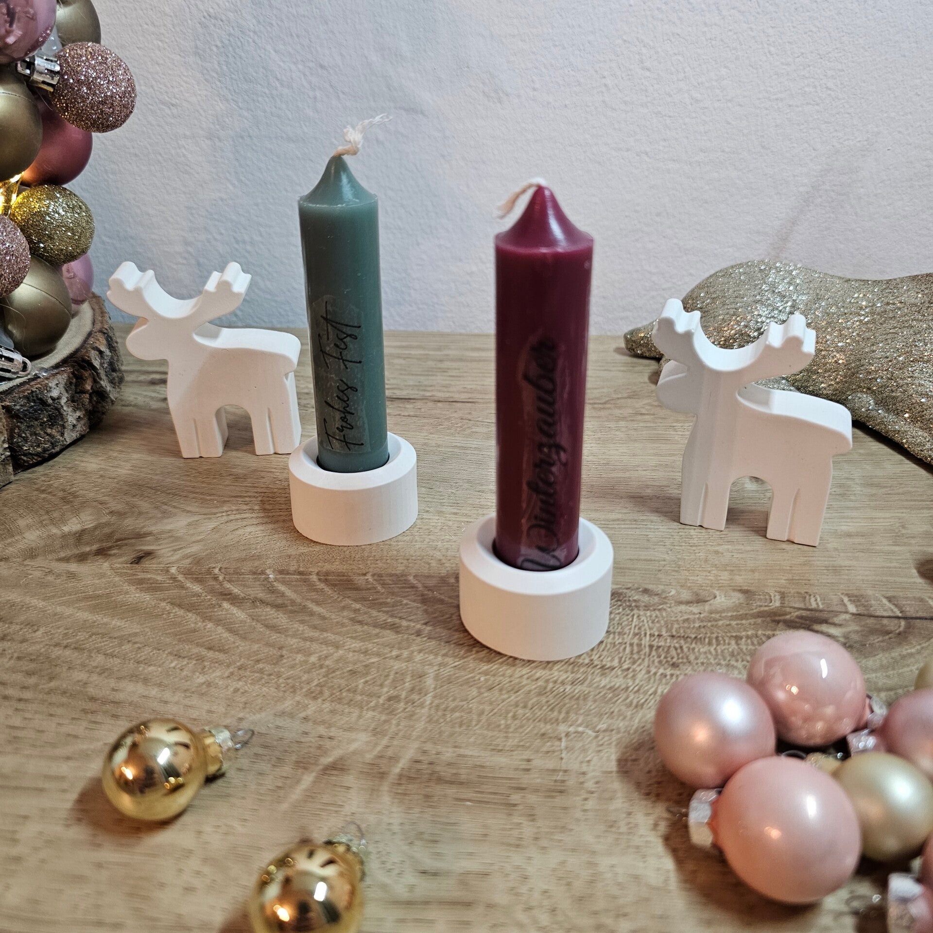 Geschenkeset mittel - Stabkerze mit Elch und Kerzenhalterung