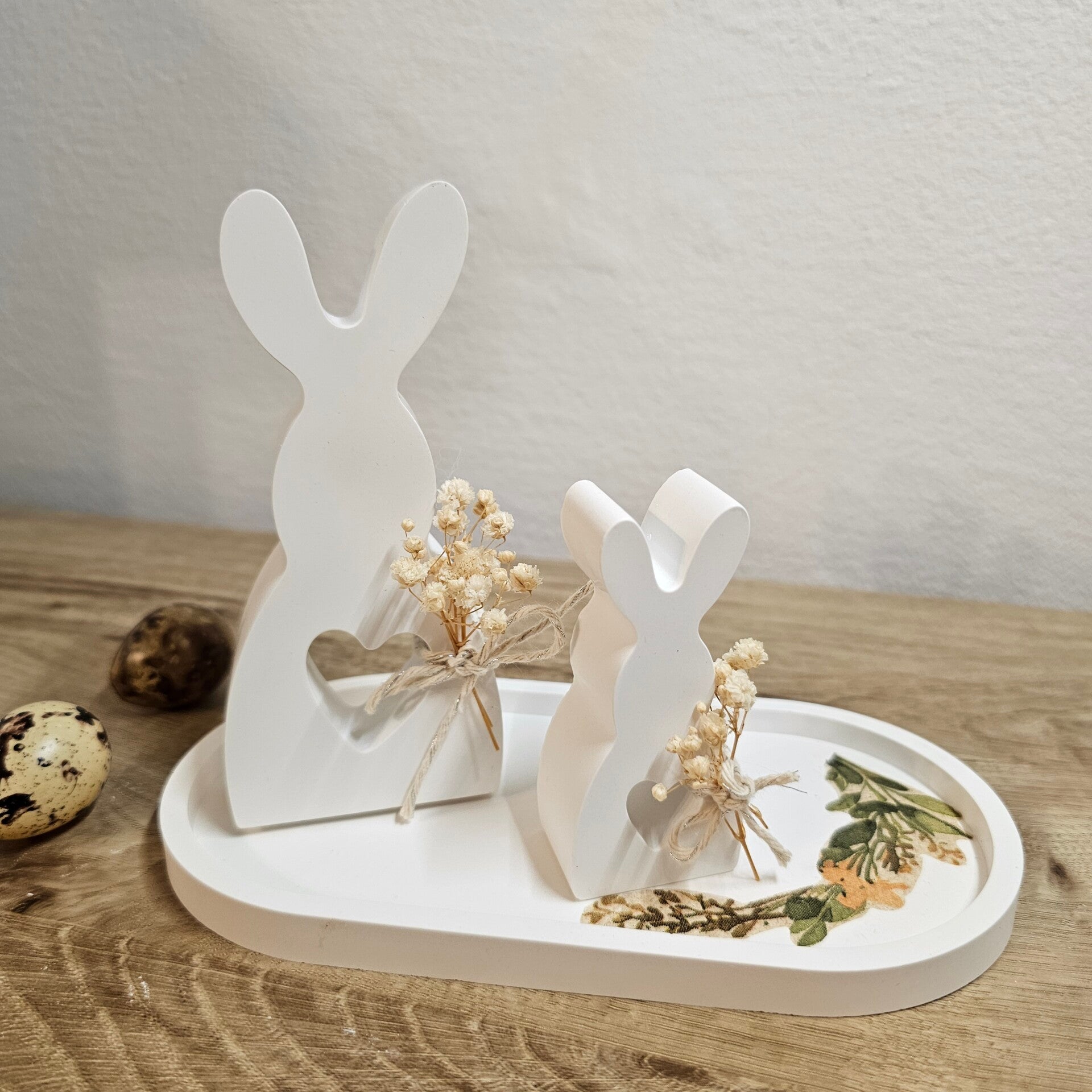 📏 Produktmaße: Oval 17,5 cm x 9 cm, kl. Hase 7,5 cm x 3,5 cm x 2 cm, gr. Hase 12,5 cm x 5,5 cm x 2 cm