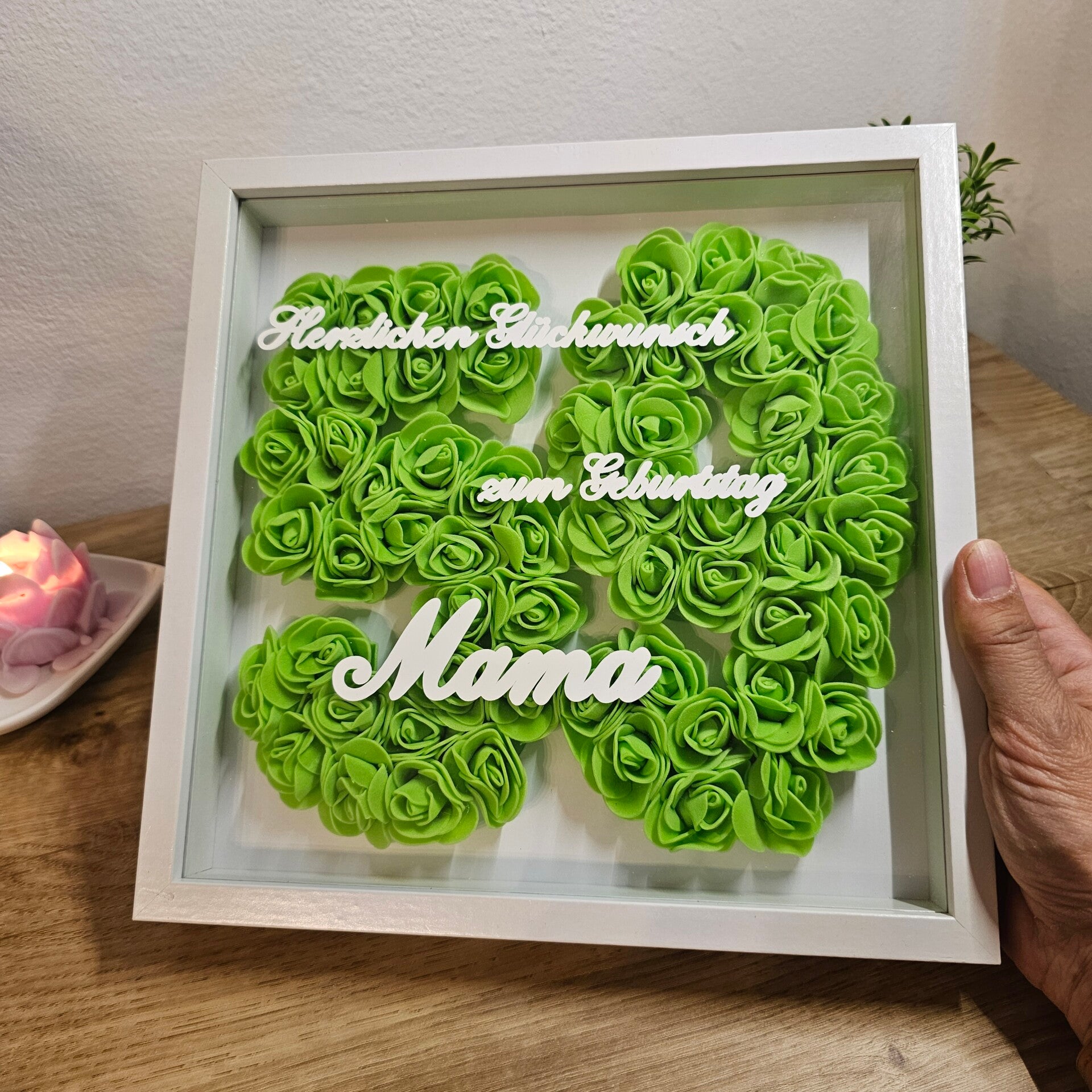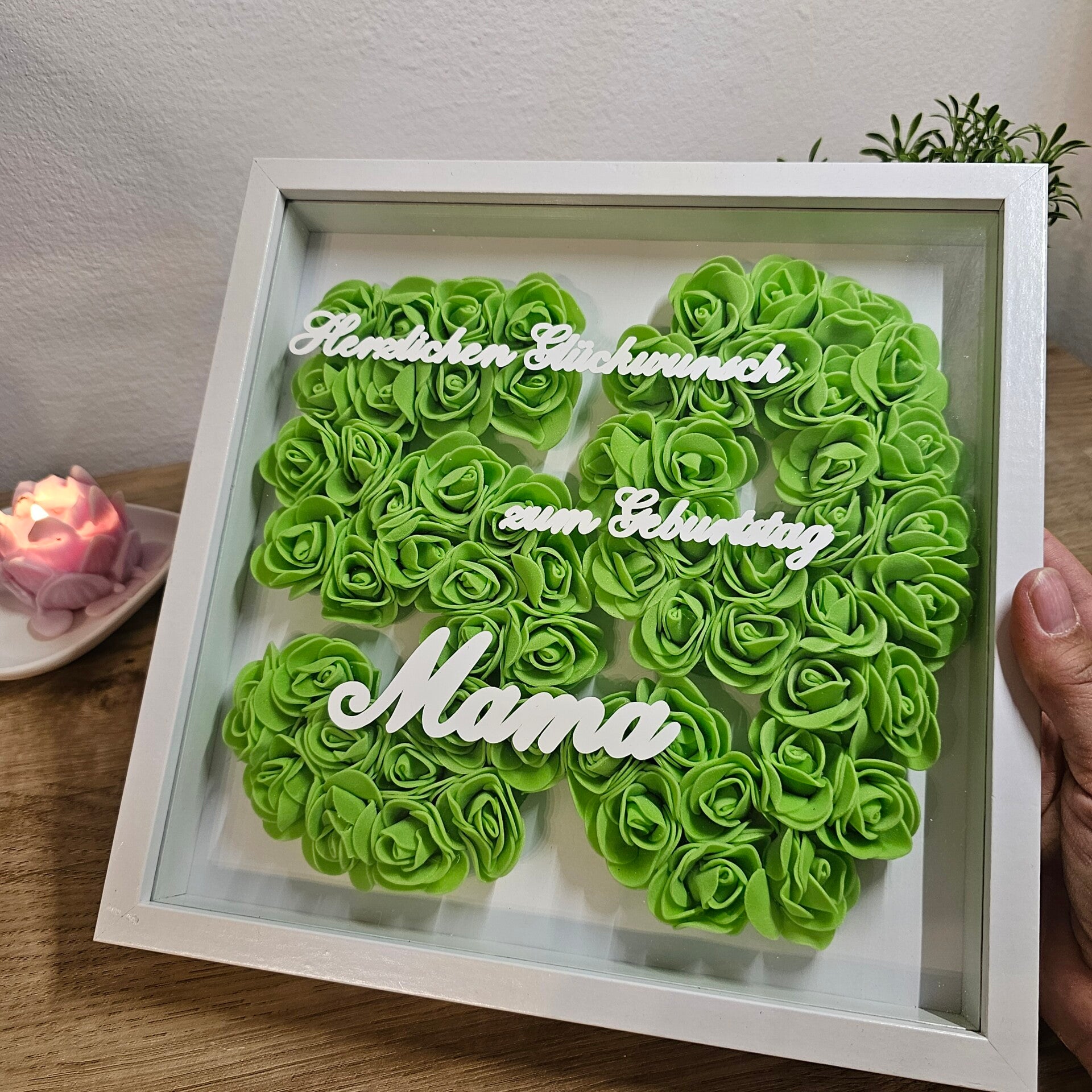 Dekorativer Bilderrahmen mit handgefertigten Schaumstoffrosen in verschiedenen Farben, wahlweise mit Namen und verschiedenen liebevollen Sprüche, ein persönliches Geschenk zum Geburtstag